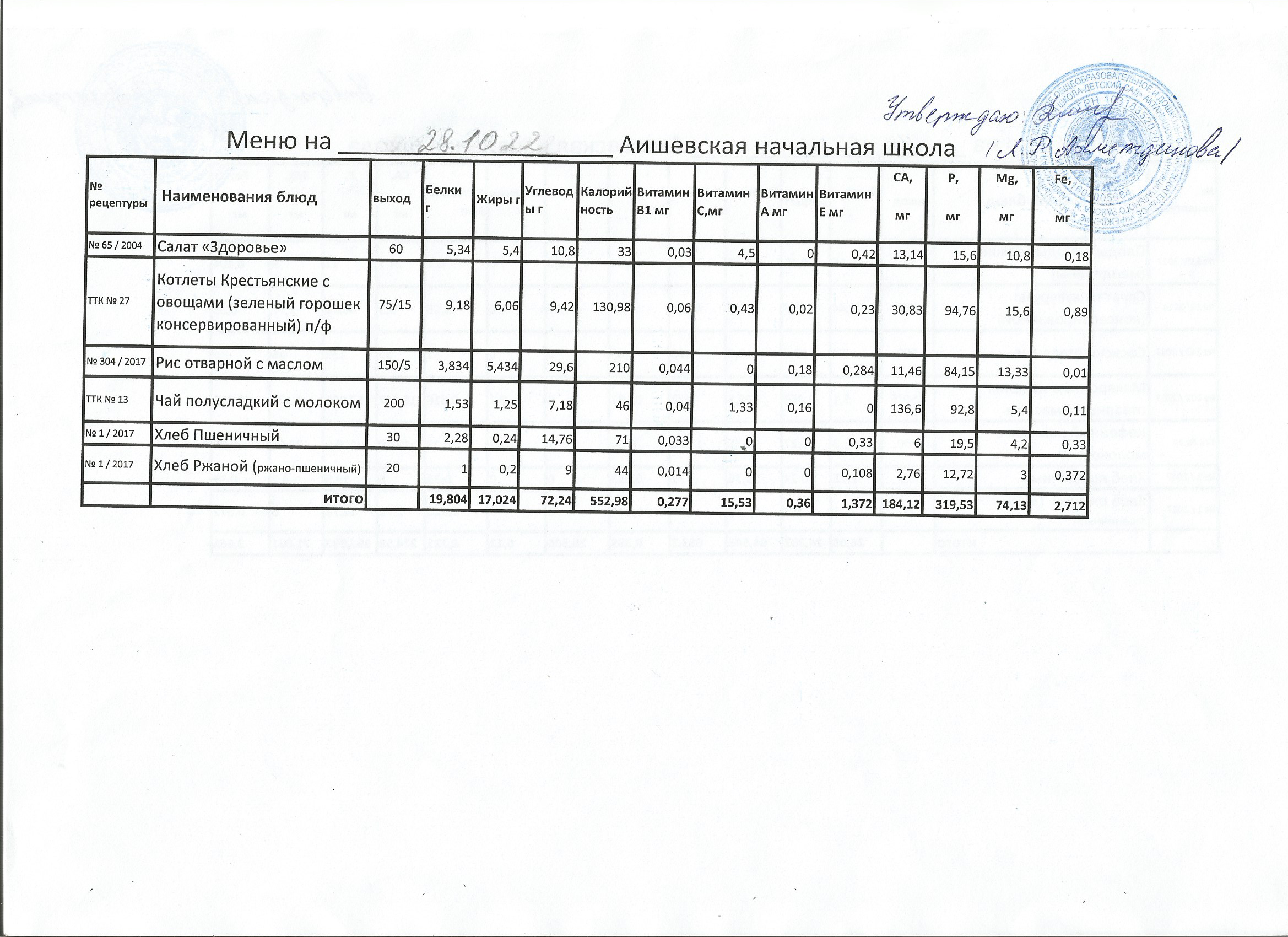 меню на 28.09.2022