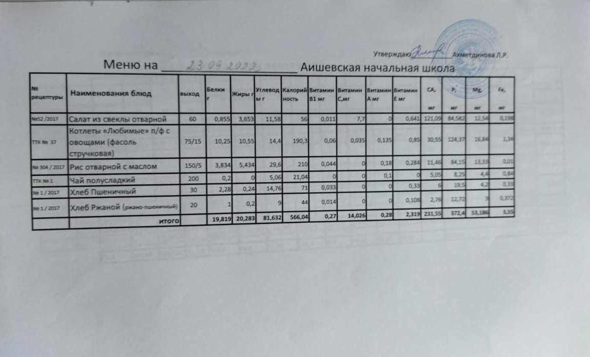 меню на 23.09.2022