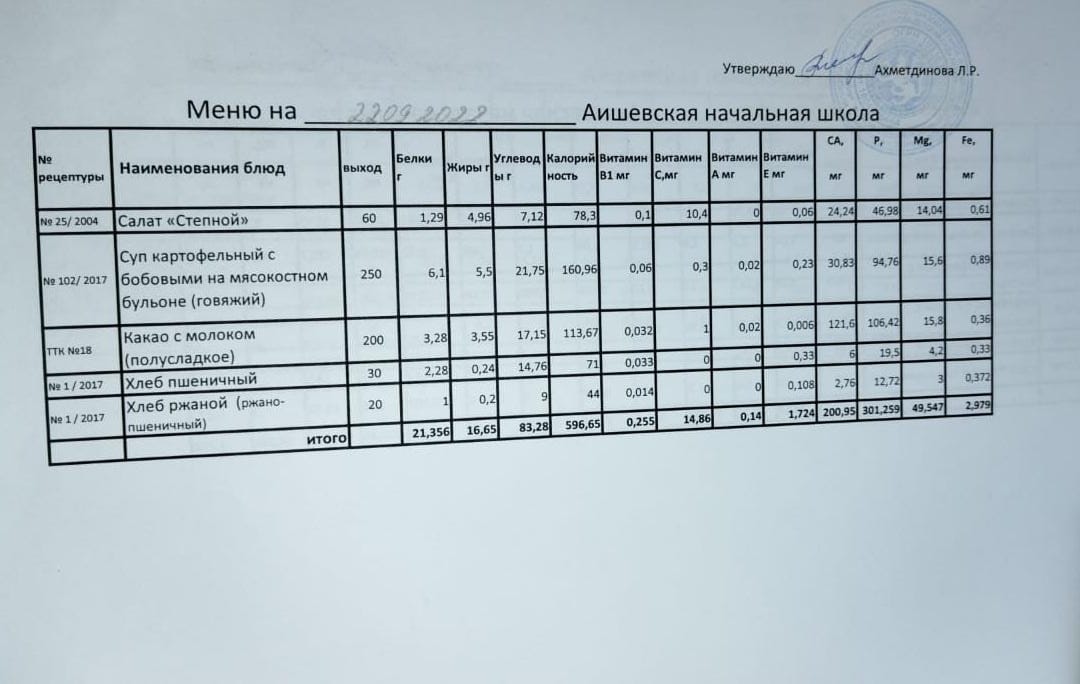 меню на 22.09.2022