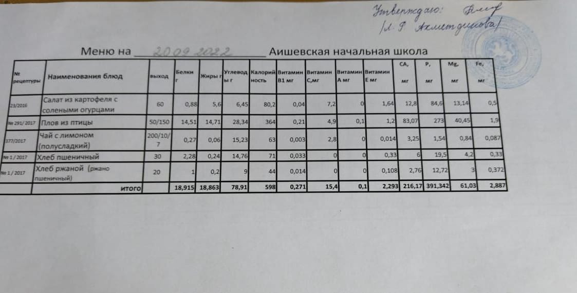 меню на 20.09.2022