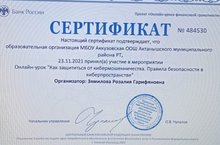 23 ноябрь көнне 8 нче сыйныф укучылары "Кибермошенниклыктан ничек сакланырга? Киберпространствода куркынычсызлык кагыйдәләре" дигән темага финанс грамоталылыгы буенча онлайн-дәрескә кушылдылар. Укучылар киберпространство, электрон банкинг, интернеттагы мошенниклык, банк карталары, телефон мошенниклыгы, виртуаль мохиттә куркынычсызлык кагыйдәләре белән таныштылар. Дәрес актуаль һәм кызыклы булды.