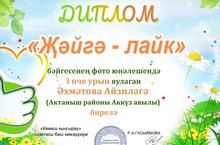 По итогам конкурса «Лайк на лето», проведенного газетой «Көмеш кыңгырау», ученица 9 класса МБОУ «Аккузовская ООШ» Ахметова Айзиля заняла I место по направлению фото. Руководитель: Ахметова Чулпан Инсафовна. Поздравляем!