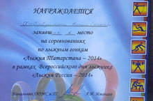 16 нчы февральдә районкүләм "Татарстан чаңгысы - 2014" ярышы үтте. 6 нчы класс укучысы Хабибуллина А. 1 нче урынны яулады. Җиңүен белән сине чын күңелдән котлыйбыз һәм яңа уңышлар теләп калабыз!