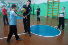 5 класста бүген физкультурадан Хабибуллин А.Д "Тупны астан кабул итү һәм тапшыру" дигән темага ачык дәрес күрсәтте