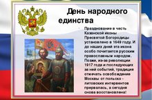День народного единства – один из самых молодых государственных праздников России. Однако события, которые мы вспоминаем 4 ноября, произошли очень и очень давно. В Российской империи праздник 4 ноября отмечался как день Казанской иконы Божией Матери. В честь этого дня, в школе состоялась единый урок с учащимися. Урок провела учительница обществозания и истории Хабибуллина С.Г.