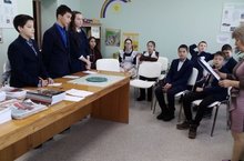Бүген, 11 нче февраль көнне, хәрби-патриотик айлык кысаларында, 5-9 нчы класс укучылары, авыл китапханәсендә булып, хәрби әдәбият белән таныштылар. Укытучысы: М.Ф.Гыйльметдинов./Сегодня, учащиеся 5-9 классов в рамках военно-патриотического воспитания посетили библиотеку, где ознакомились военной литературой. Учитель: М.Ф.Гильметдинов.