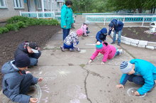 Асфальтка рәсем ясауда һәр бала үз тырышлыгын куйды. Җиңүчеләр билгеләнде.