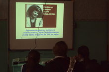 Күренекле җырчы, актриса, композитор Сара Садыйкованың тууына да 110 ел тулу уңаеннан укучыларны аның тормыш юлы, иҗаты белән таныштыру уздырылды. Укытучы Ә.Р.Исрафилова “Актаныш таңнары”, “Казан кичләре” җырларының авторлары турында да белешмә бирде һәм шул җырлар тыңланды.