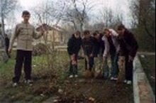 Началась уборка территории. Все классы интенсивно убирают свои участки.