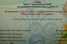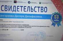 6 нчы сыйныф укучысы Салахова Таңсылу 3 интернет-конкурста катнашып сертификат белән бүләкләнде.