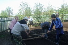 Бүген "Язның бер көне ел туйдыра" дигән мәкальне искә алып, мәктәп коллективы белән кишер, суган. аш чөгендере утырттык һәм кыяр, помидор өчен түтәлләр ясап куйдык