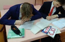 Учащиеся 9 класса готовятся к экзамену по русскому языку.