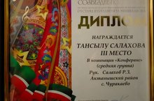 Чуракай мәктәбенең 4 класс укучысы Салахова Таңсылу, "Йолдызлык - 2021" яшьләр фестиваленең республика этабында катнашып, 3 урынга ия булды. Диплом һәм кыйммәтле бүләк иясе булды. Җитәкчесе Салахов Р.З.
