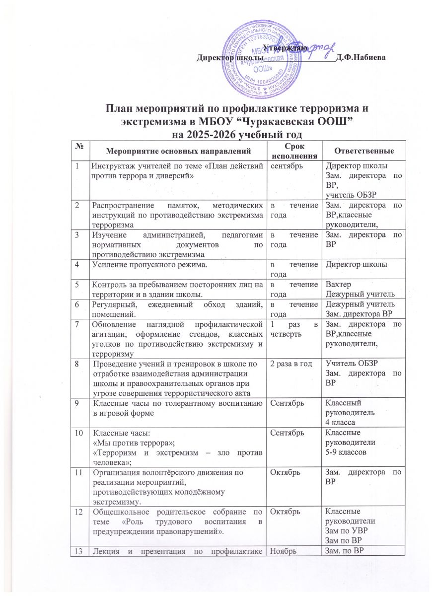 План мероприятий по профилактике терроризма и экстремизма на 2024-2025 учебный год