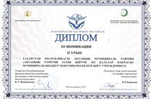 Педагогик хезмәткәрләрнең балаларга һөнәри белем бирү буенча компетенцияләрен үстерү, проект эшчәнлеген камилләштерү максатыннан Татарстан Республикасы Мәгшарифне үстерү институты үткәргән "Һөнәри белем бирү остаханәсе" авторлык методик эшләнмәләрнең төбәкара конкурсында бакчабыз тәрбиячеләре Хәбибуллина А.М. һәм Ибраһимова А.Р. "Һөнәрләр әлифбасы" номинациясендә җиңү яулап 3нче дәрәҗә диплом белән бүләкләнделәр.