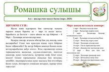 Бакчабыз тормышын, балалар һәм педагоглар эшчәнлеген яктыртучы "Ромашка сулышы" газетасының март ае саны дөнья күрде. Ата-аналар өчен махсус басма белән тулырак сылтама аша кереп таныша аласыз. https://edu.tatar.ru/aktanysh/dou2/read-news/3813408