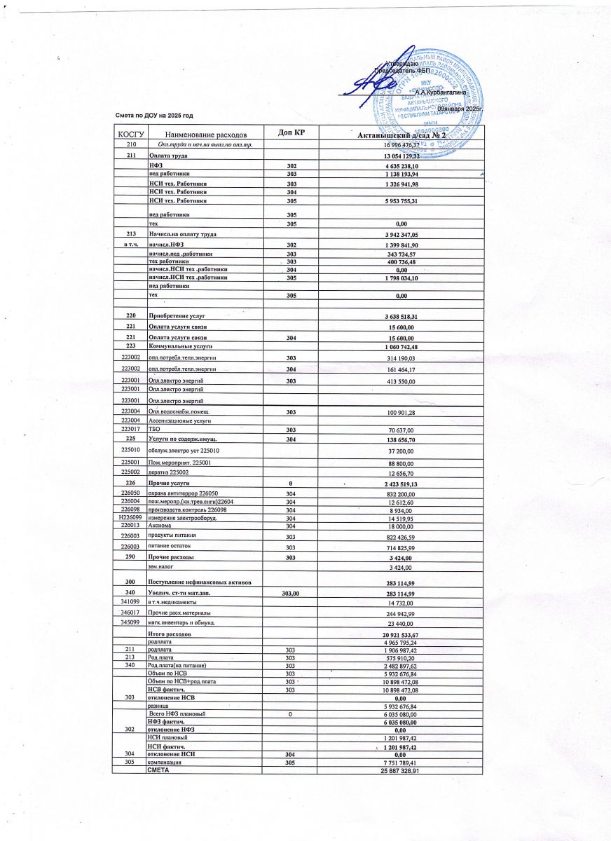 Смета расходов (бюджет) на 2025 год