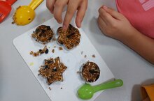 Без мәктәпкә әзерлек төркеме балалары белән кошларга печенье ясадык. Рецептын сезнен белән дә бүлешәбез, өйдә балаларыгыз белән эшләп, безнен канатлы дусларыбызны сөендерегез. Ингредиентлар: әзер кош азыгы; желатин; су; картоннан яки силиконнан формалар; баулар. Хәзерлек: Тазикка әзер кош азыгы салырга. Әзерләнгән катнашмага бүрткән желатин салырга һәм болгатырга. Әзерләнгән массаны формаларга таркатырга, тыгызларга. Бау өчен тишек ясарга. Формаларны катып калу өчен салкынга чыгарырга. Тәрбияче: Мингазетдинова Л.Р.