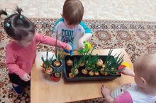 С целью формирования устойчивого интереса детей к природе, а так же создания благоприятных условий для воспитания экологически грамотного ребенка, во второй группе детей раннего возраста (ясле) была организована огород на подоконнике. Солнышко с каждым днём всё выше и выше, а день всё длиннее и теплее. Пришло время посадок. Огород на подоконнике в детском саду является очень приятным занятием, особенно зимой или весной. Огород на подоконнике – отличный способ развеять сезонную тоску по природным цветам и теплу. Расширения представлений детей о том, как ухаживать за растениями в комнатных условиях, обобщения представлений о необходимости света, тепла, влаги почвы для роста растений, развития познавательных и творческих способностей детей.