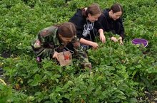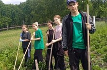 ЛТО лагеры укучылары бакчада җиләк арасын чүптән арындыралар,төпләрен йомшарталар.