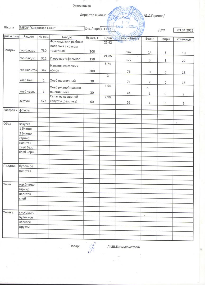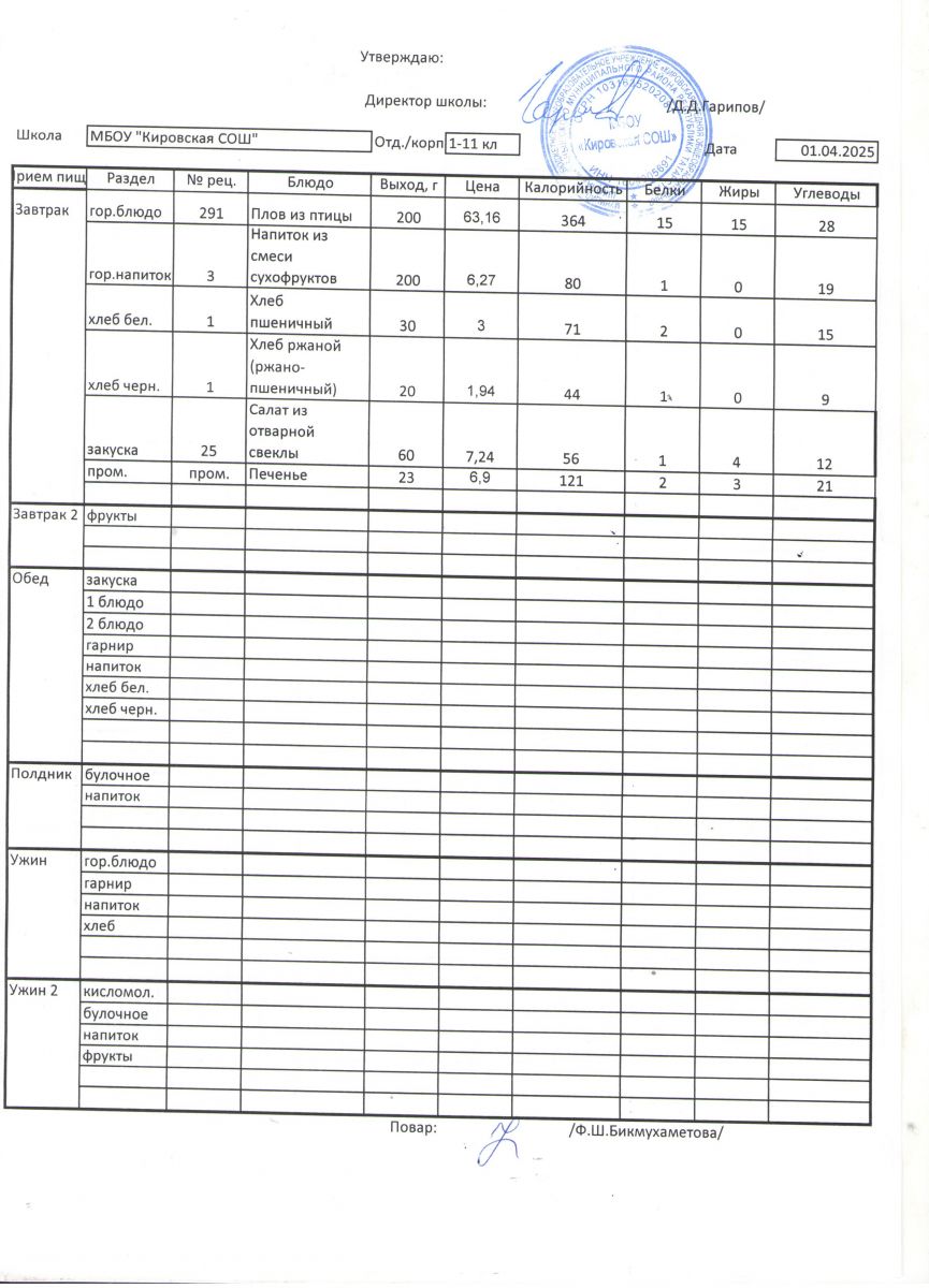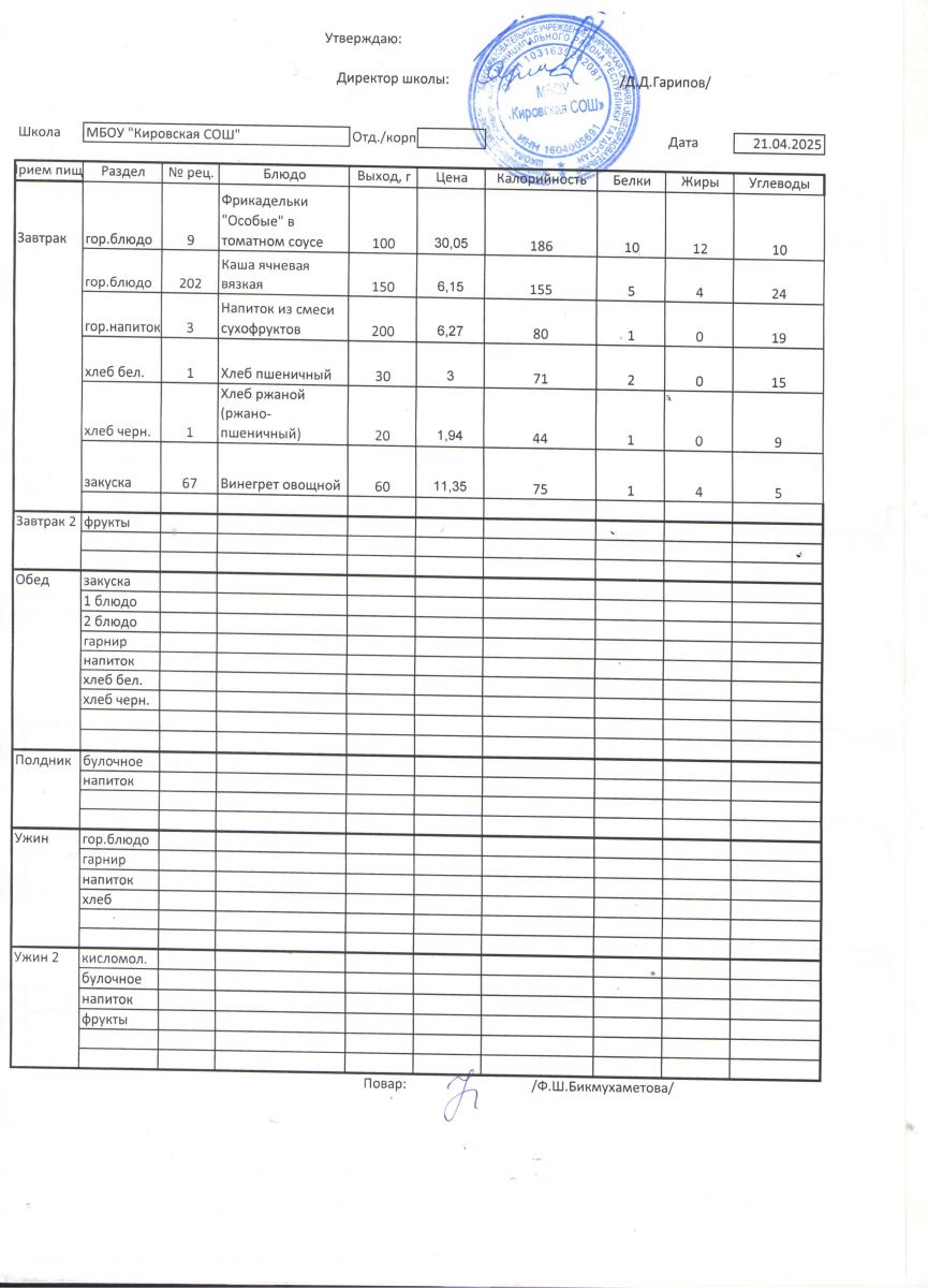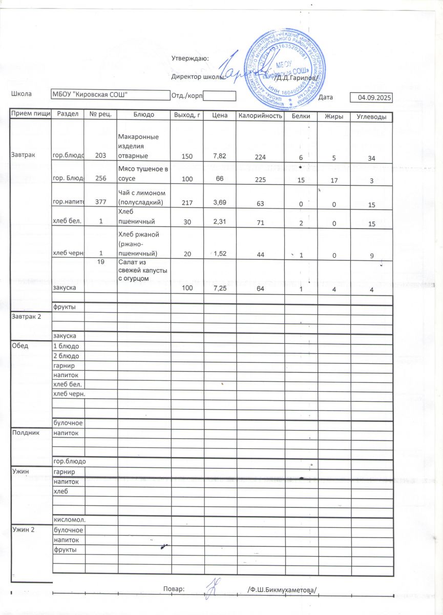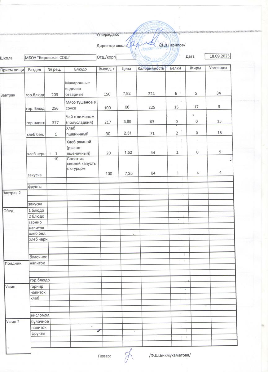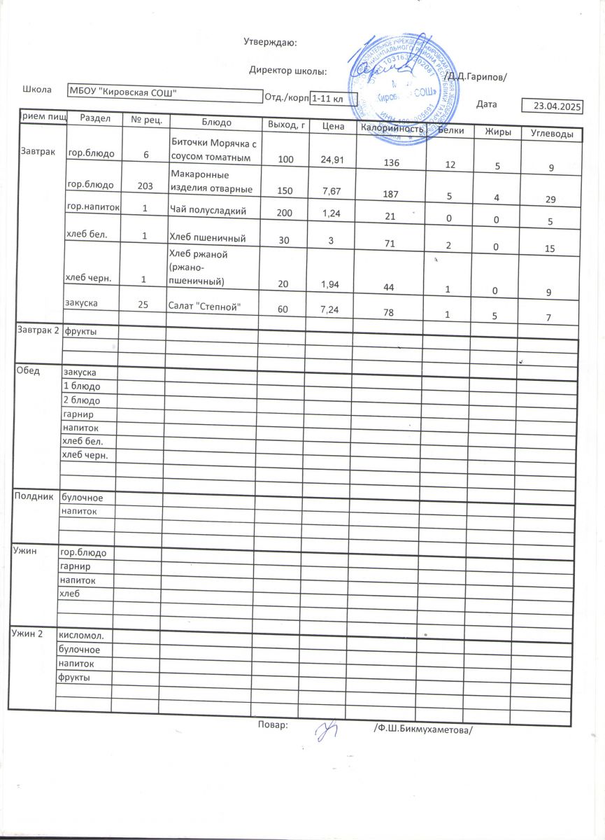 ОДНОДНЕВНОЕ МЕНЮ (ссылка на "Мониторинг питания")