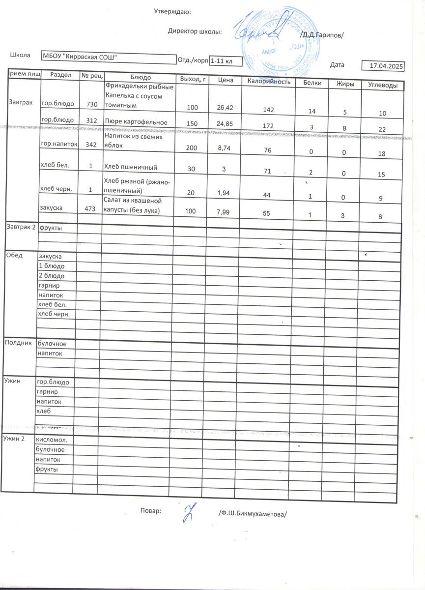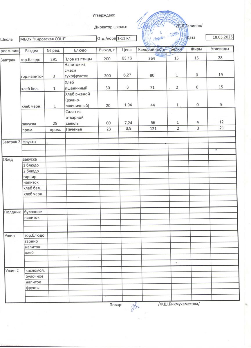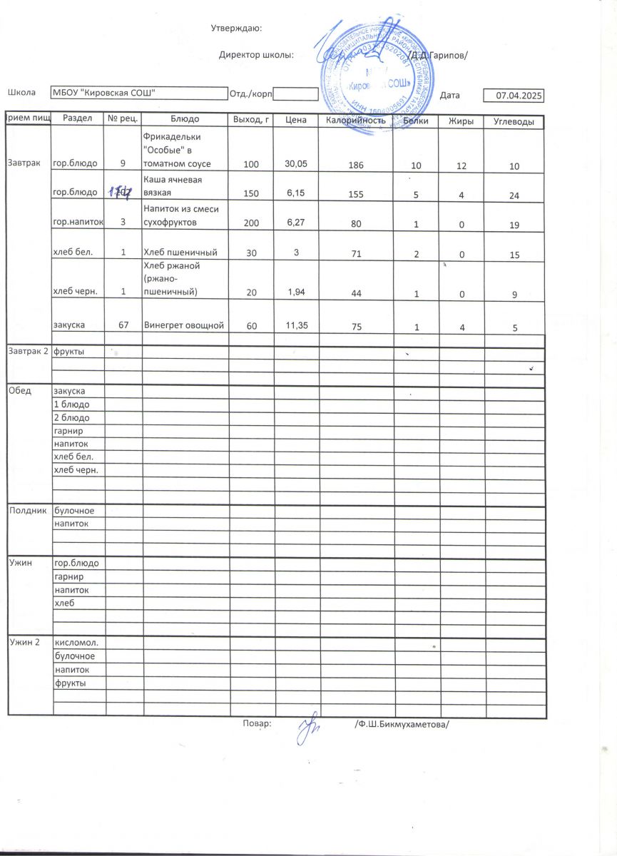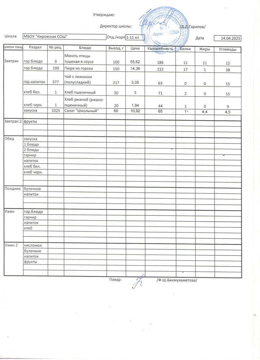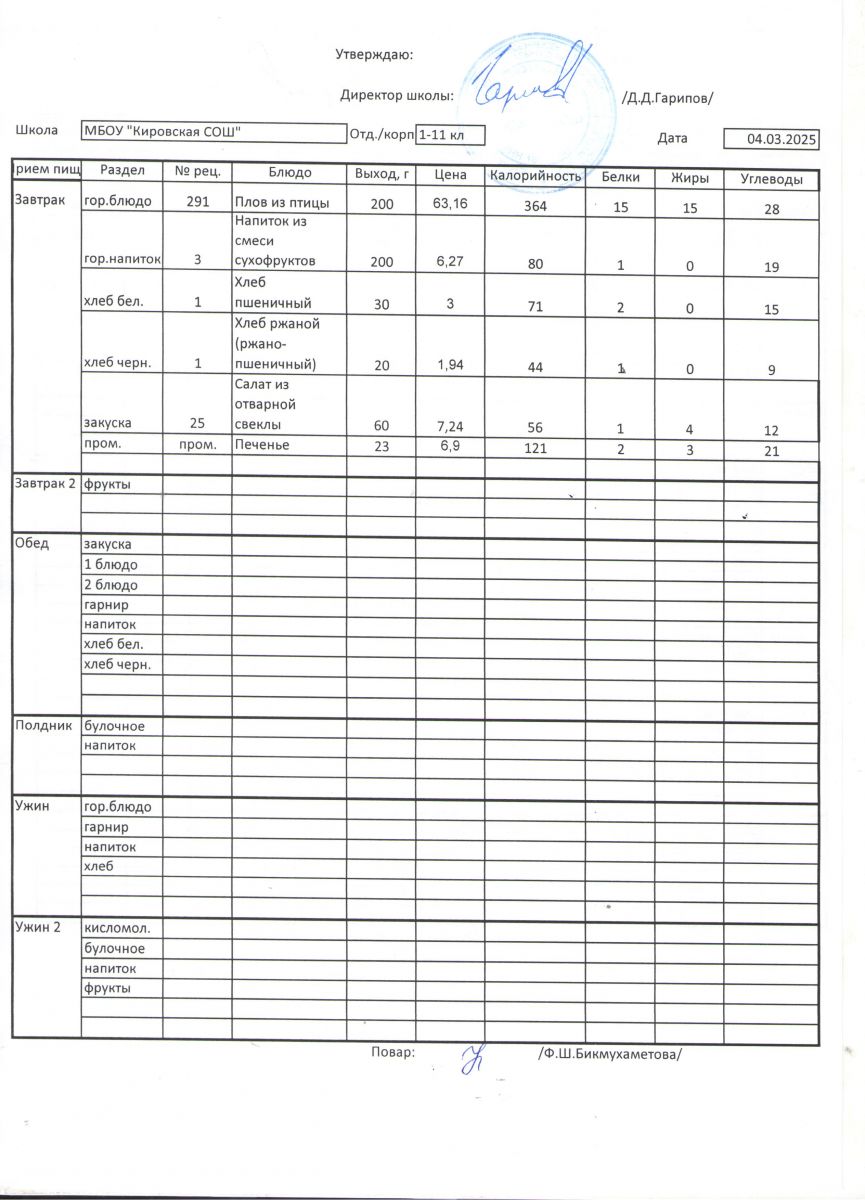 ОДНОДНЕВНОЕ МЕНЮ (ссылка на "Мониторинг питания")