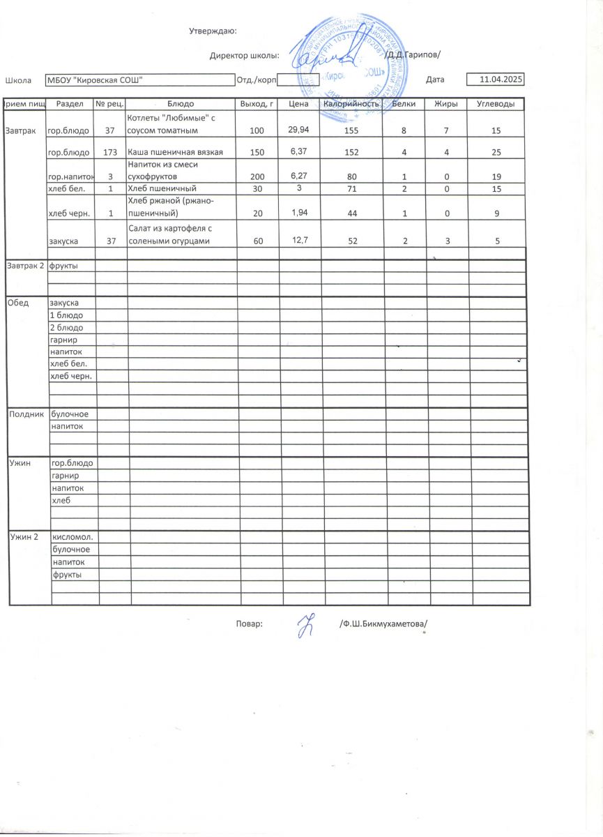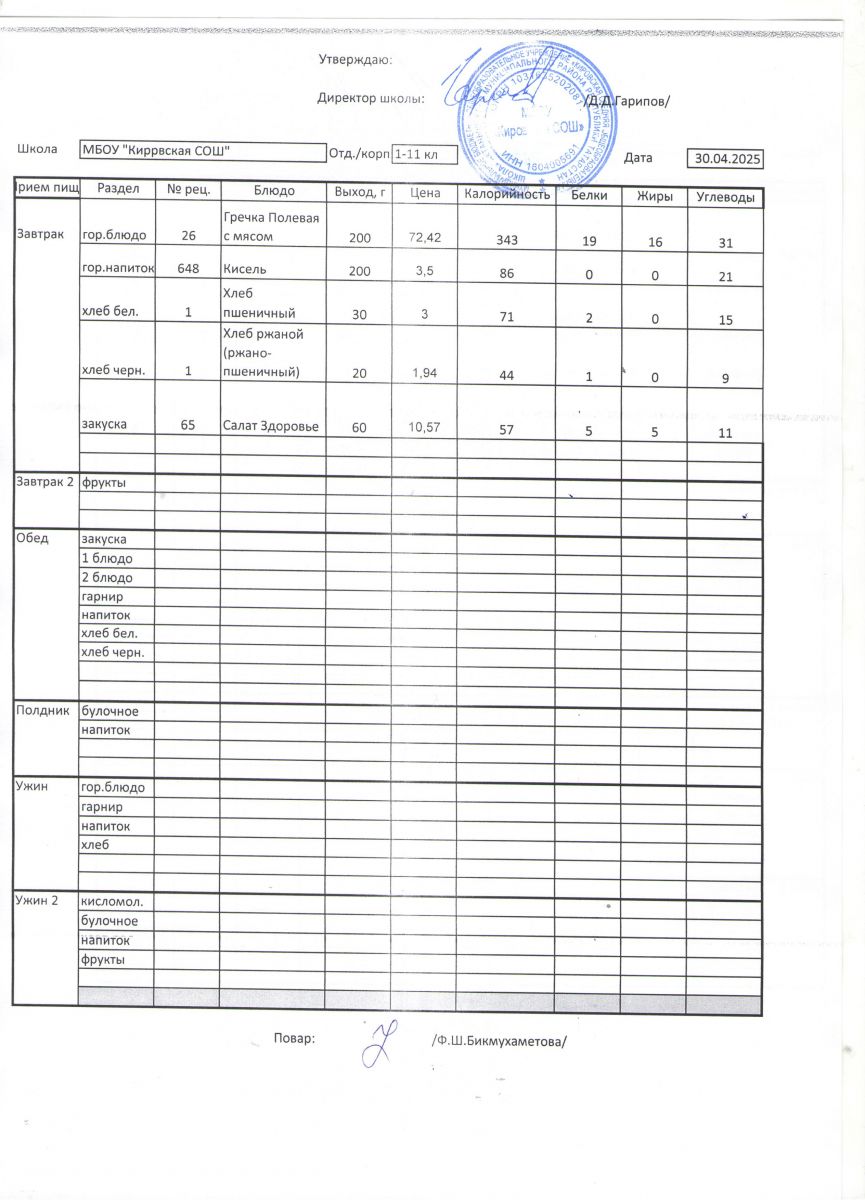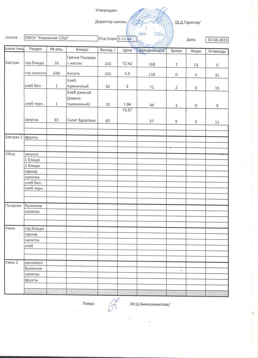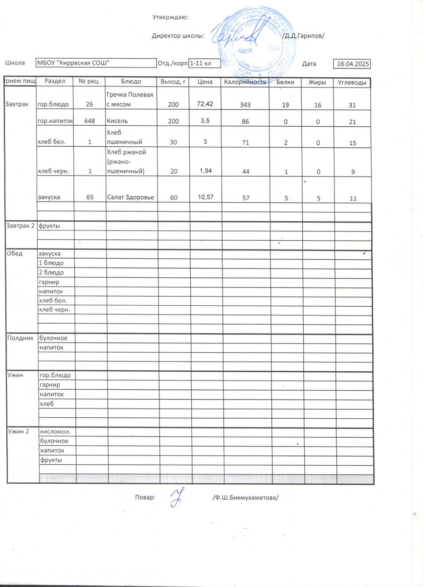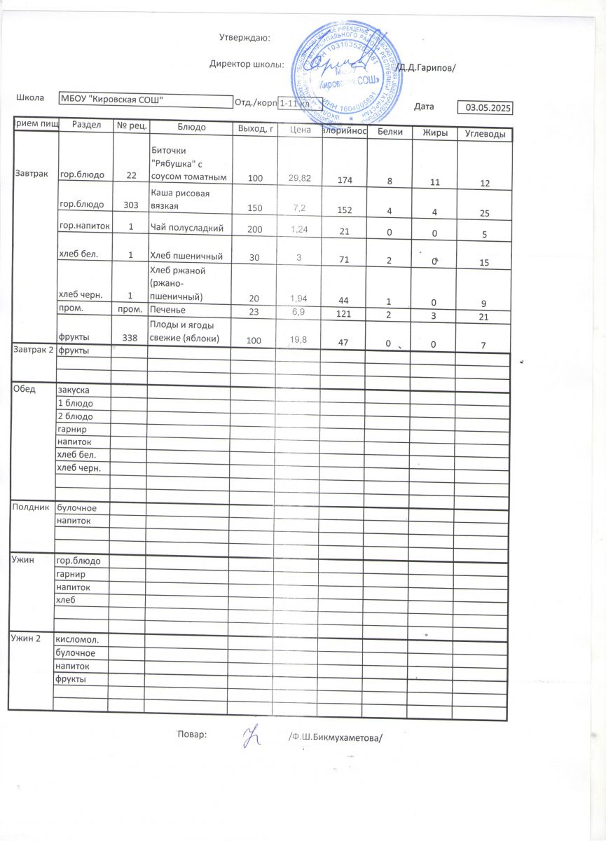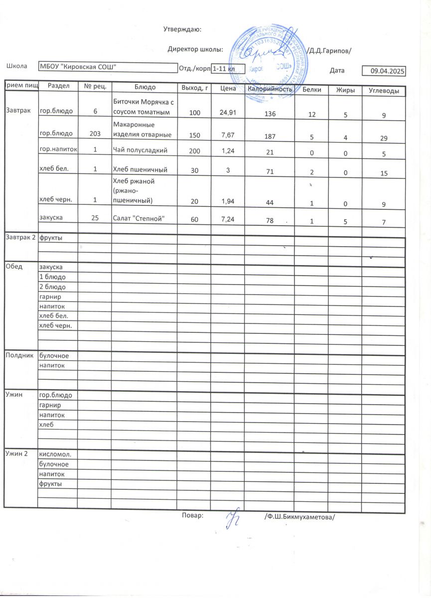 ОДНОДНЕВНОЕ МЕНЮ (ссылка на "Мониторинг питания")