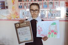 На фото Элина Арсланова с рисунком "Голубь мира".