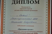 Замечательный вожатый - 2020 25.01.2020 24 января на базе МБОУ «АСОШ» №1 прошел муниципальный этап республиканского конкурса "Замечательный вожатый2020". В нем приняли участие 17 учащихся образовательных учреждений Актанышского муниципального района. Честь нашей школы защищала ученица 7 класса Усманова Елизавета (педагог-организатор Усманова Л.Р.), победившая в номинации «Признание коллег». Так держать, Лиза!