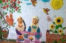 Күмәк коллектив көче белән күргәзмәгә тозлы камырдан "Өч кыз" әкиятенә панно әзерләдек.