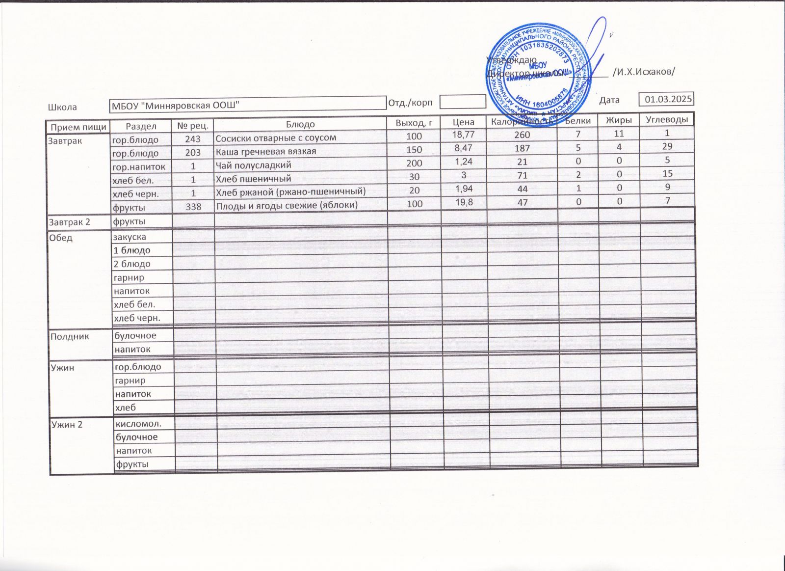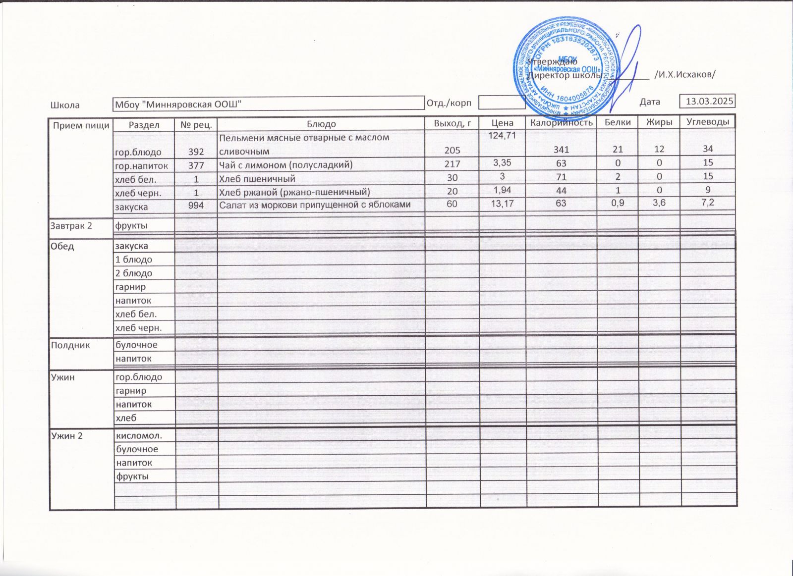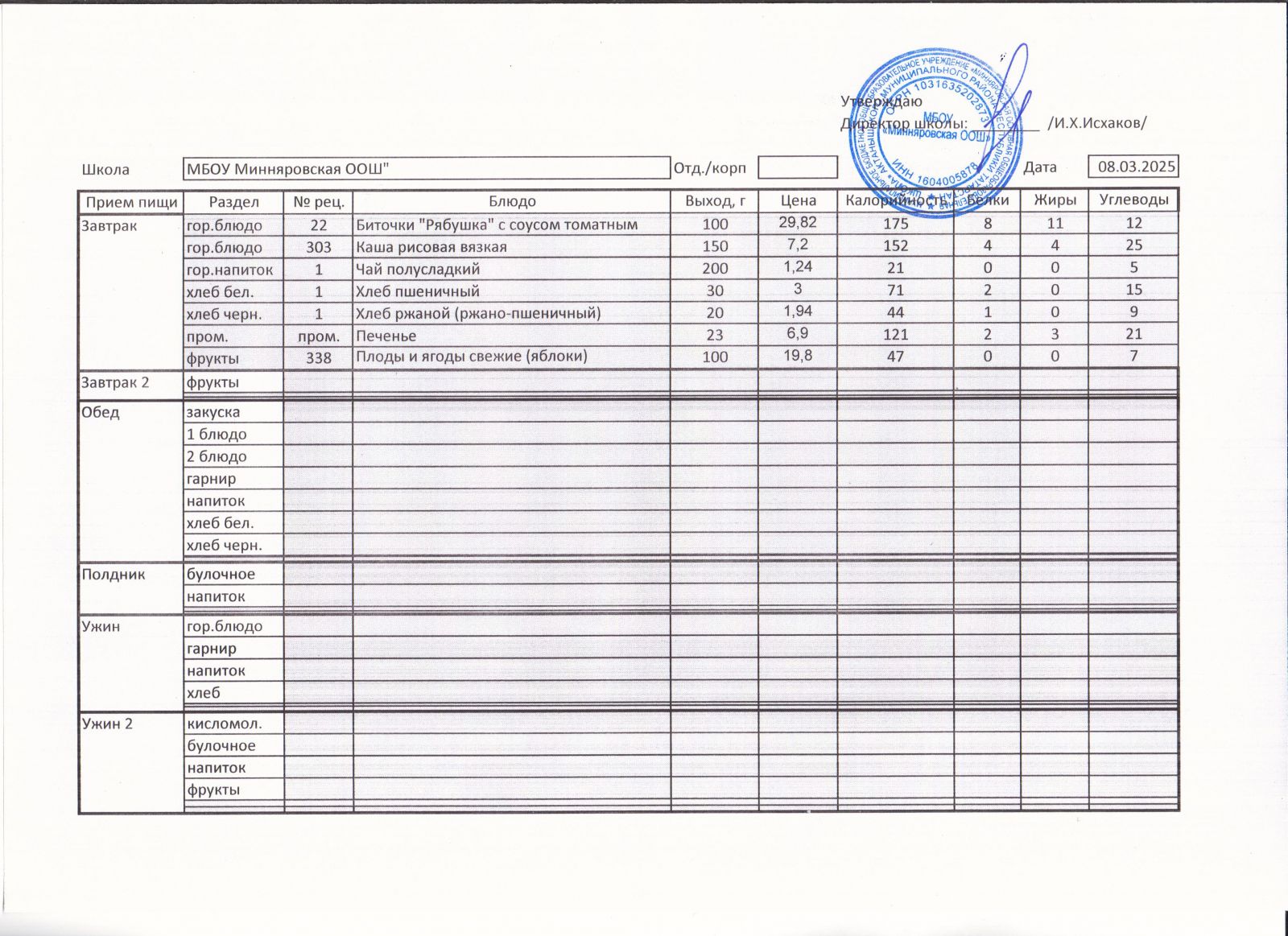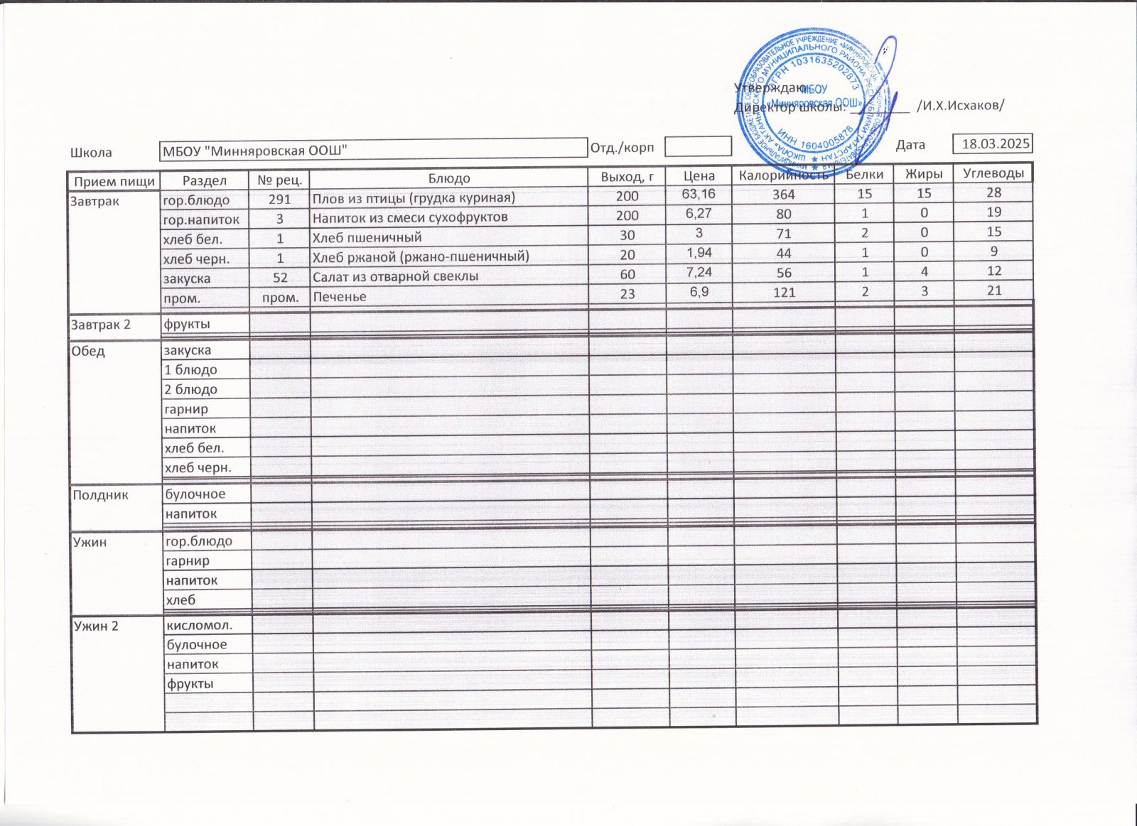 Меню МБОУ "Минняровская ООШ" на 09.03.2021, на 10.03.2023, на 11.03.2021, на 12.03.2021, на 13.03.2021 г.