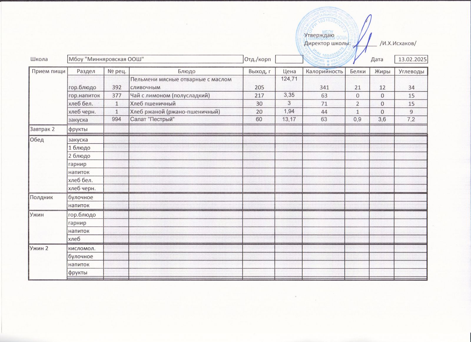 Меню МБОУ "Минняровская ООШ" на 08.02.2021, на 09.02.2021, на 10.02.2021, на 11.02.2021, на 12.02.2021, на 13.02.2021