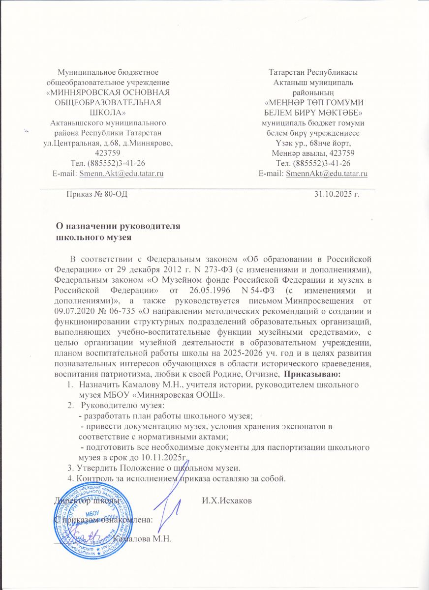 Муниципальное бюджетное общеобразовательное учреждение «Минняровская основная общеобразовательная школа» Актанышского муниципального района Республики Татарстан /Татарстан Республикасы Актаныш муниципаль районы "Меңнәр төп гомуми белем бирү мәктәбе" гомуми белем бирү муниципаль бюджет учреждениесе