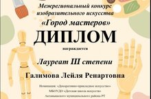 Спешим поделиться прекрасными итогами Межрегионального конкурса изобразительного искусства "Город мастеров" , который проводился с 12 февраля по 13 марта 2025г.на базе МБОУ ДО "ДШИ" Ново-Савиновского района г.Казань.