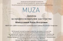За высокий профессиональный уровень в подготовке участников Международного конкурса «MUZA».