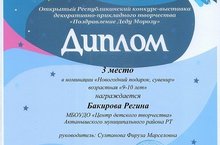 "Кыш бабайга котлау" - республика күләм ачык күргәзмә-бәйгесенең "Яңа ел бүләге,сувенир"номинациясендә җиңү яулаган Бакирова Регинаны котлыйбыз!