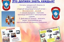 Сигнал "Внимание всем!"- сопровождается включением сирен,прерывистыми гудками с последующей речевой информацией о сигнале ГО: