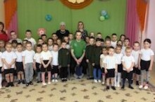 Безнең балалар бакчасында дулкынландыргыч һәм бик мөһим очрашу узды. Безгә кунакка кыска вакытлы ялда булган, махсус һәрби операциясендә катнашучы авылыбыз егете Гилемов Салават килде. Балалар солдатның үзенең балачагы, мәктәп еллары, студент булуы, аннары армиядә хезмәт итүе турында зур игътибар белән тыңладылар. Балалар кунак абыйларына шигырьләр сөйләделәр, патриотик җырлар җырладылар. Бу очрашуда балалар чын геройларның янәшәдә яшәвен, батырлыкның, үз Ватаныңа мәхәббәтнең, үз иленең чын патриоты булуның ачык мисалын күрделәр. Мондый очрашуларның әһәмияте балаларда патриотик хисләр тәрбияләүдә бәяләп бетергесез./ В нашем детском саду состоялась трогательная и очень важная встреча. В гости к нам пришел участник специальной военной операции Гилемов Салават-уроженец нашего села, находящийся в краткосрочном отпуске. Дети с большим вниманием слушали рассказ солдата о его детстве, школьных годах, студенчестве, а затем и службе в армии. Дети рассказали гостю стихи, пели патриотические песни. В этой встрече ребята увидели, что настоящие герои живут рядом, пример мужества, любви к своей родине, истинного патриота своей страны. Значение таких встреч в воспитании патриотических чувств у детей неоценимо.