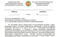 Во исполнение письма Департамента государственной политики в сфере воспитания детей и молодежи Министерства образования и науки Российской Федерации о проведении всероссийской олимпиады школьников и студентов в рамках реализации мероприятий федеральной целевой программы «Русский язык на 2016-2020 годы» Министерством образования и науки Республики Татарстан совместно с Казанским (Приволжским) федеральным университетом проведен региональный тур всероссийской олимпиады школьников и студентов по государственным языкам республик Российской Федерации.