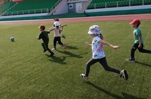 Бүген стадионга экскурсиягә бардык. Футбол уйнадык, йөгереп ярыштык.Сегодня мы совершили экскурсию по стадиону. Играли в футбол, соревновались в беге. -