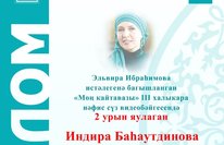 "ТАТМЕДИА" АҖ филиалы "Актаныш - информ" Эльвира Ибрагимова истәлегенә багышланган "Моң кайтавазы" III халыкара нәфис сүз видиобәйгесендә катнашып, 2 нче урын яулаган мәктәпкә әзерлек төркемендә тәрбияләнүче Баһаутдинова Индира Азат кызын зур уңышы белән котлыйбыз. Әфәрин, Индира!!!