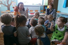 Кечкенәләр группасында ата-аналар белән эшчәнлек тыгыз элемтәдә алып барыла.Район методик берләшмәсенә йөрүче тәрбиячеләргә " Чуар тавык" әкиятен сәхнәләштерелеп күрсәттеләр.