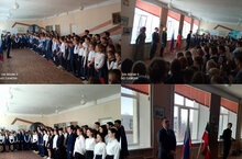 Дүшәмбе иртәсе, патриотик хис тәрбияләү максатыннан, Россия Федерациясе һәм Татарстан Республикасы гимнарын тыңлау белән башланып китте. Иртәнге линейкада тарих укытучысы Р.Н.Сафиуллин Россия Федерациясе һәм Татарстан Республикасы гимнары һәм флаглары килеп чыгышы һәм авторлары турында сөйләде.