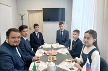 Каюмов Булат, Миргалимов Ленар, Имамов Хәйдәр, Харисова Айгөл, Гарифьянов Ислам мәктәбебез директоры Альберт Мирхәт улы Мансуров белән иртәнге чәйдә, эшлекле әңгәмәдә булдылар! -