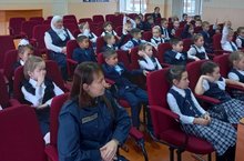 Юл хәрәкәте иминлеге Актаныш районы профилактика җитәкчесе Фазлыева Лена Музаятовна бүген мәктәбебезнең 1 класс укучылары белән очрашты. Ул укучыларга юл йөрү кагыйдәләрен төгәл үтәргә, юлда йөргәндш сак һәм игътибарлы булырга кирәклеген аңлатты.