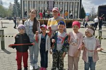 Мәктәп укучылары "Георгий тасмасы" акциясендә актив катнаштылар. Волонтерлар авыл халкына һәм кунакларга тасмалар тараттылар.
