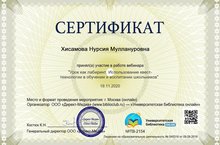Библиотекарь школы Хисамова Нурсия Муллануровна приняла участие в вебинаре "Урок как лабиринт. Использование квест-технологий в обучении и воспитании школьников".