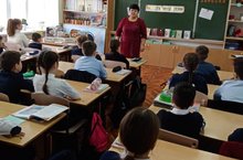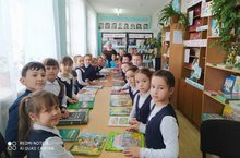 28 ноября в 4а классе прошел библиотечный урок "Писатели - детям". Школьный библиотекарь Хисамова Нурсия Муллануровна познакомила ребят с биографиями детских писателей, выставкой книг, юбилярами-писателями.