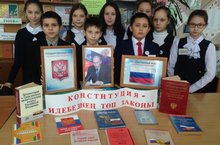 12 декабрь - Россия Конституциясе көне уңаеннан китапханәдә "Конституция - илебезнең төп законы" исем астында китап күргәзмәсе эшли. Шул уңайдан китапханәче Хисамова Нурсия Муллануровна 5а сыйныф укучыларына конституция тарихы, ватандашлырыбызның хокуклары һәм бурычлары турында сөйләде.