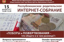 15 декабря состоится второе республиканское родительское собрание в форме интернет-конференции. Новый проект Минобрнауки РТ – республиканское родительское интернет-собрание - стартовал 17 ноября, когда состоялось первое такое собрание. По словам замминистра образования и науки РТ Ларисы Сулимы, заседания родительских собраний в форме интернет-конференций планируется проводить раз в месяц. На первом мероприятии «Как учить, а не мучить?» обсуждали ресурсы семьи в адаптации ребенка к школе и мотивации его к обучению. Тема собрания 15 декабря - "Поборы и пожертвования: что общего и в чём разница?"